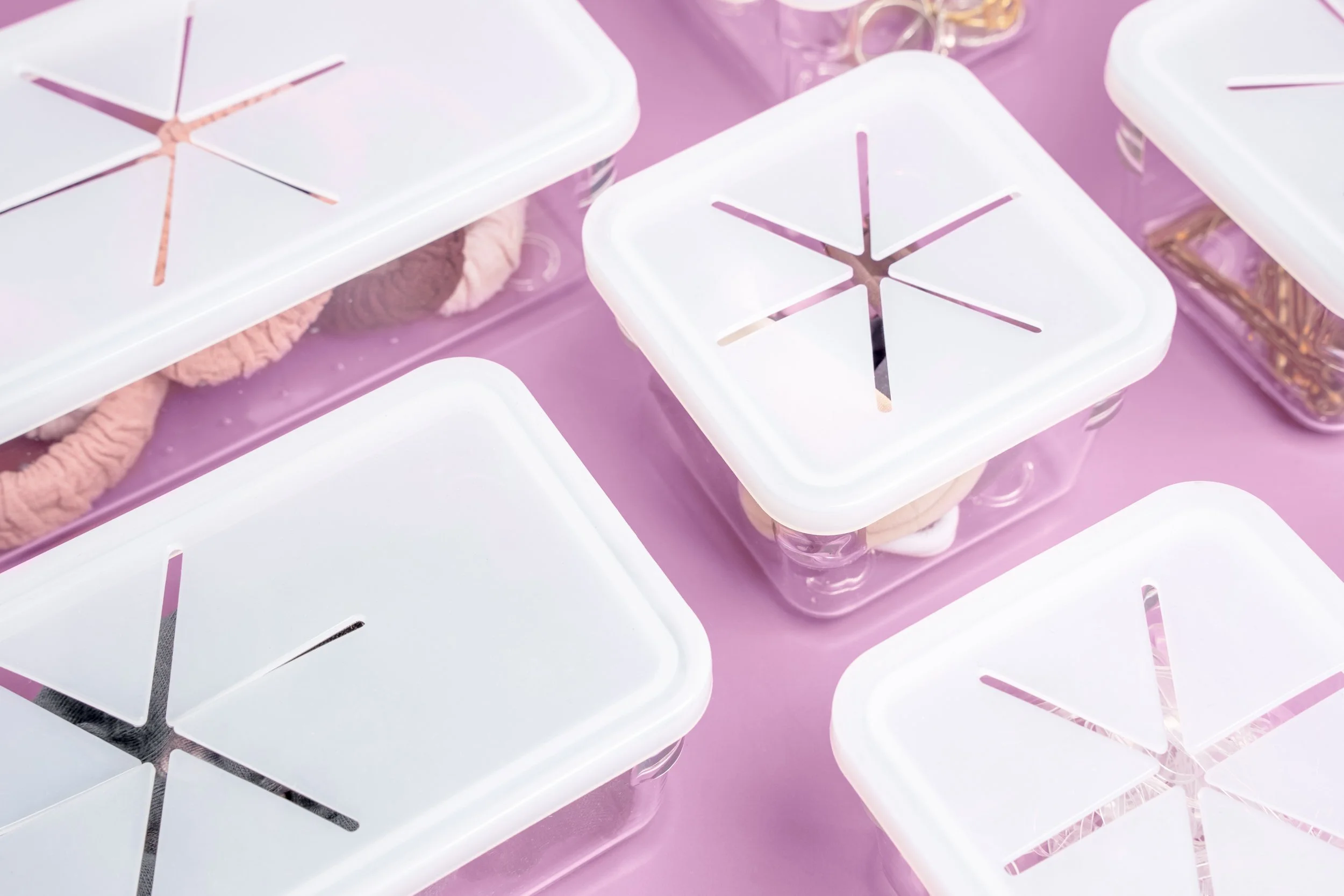 Our INNOVATIVE EASY-GRAB silicone lid features a unique star-shaped opening, allowing you to easily access your small accessories while keeping your space TIDY. No more digging through piles and creating an even bigger mess—just seamless and organized access to your essentials!