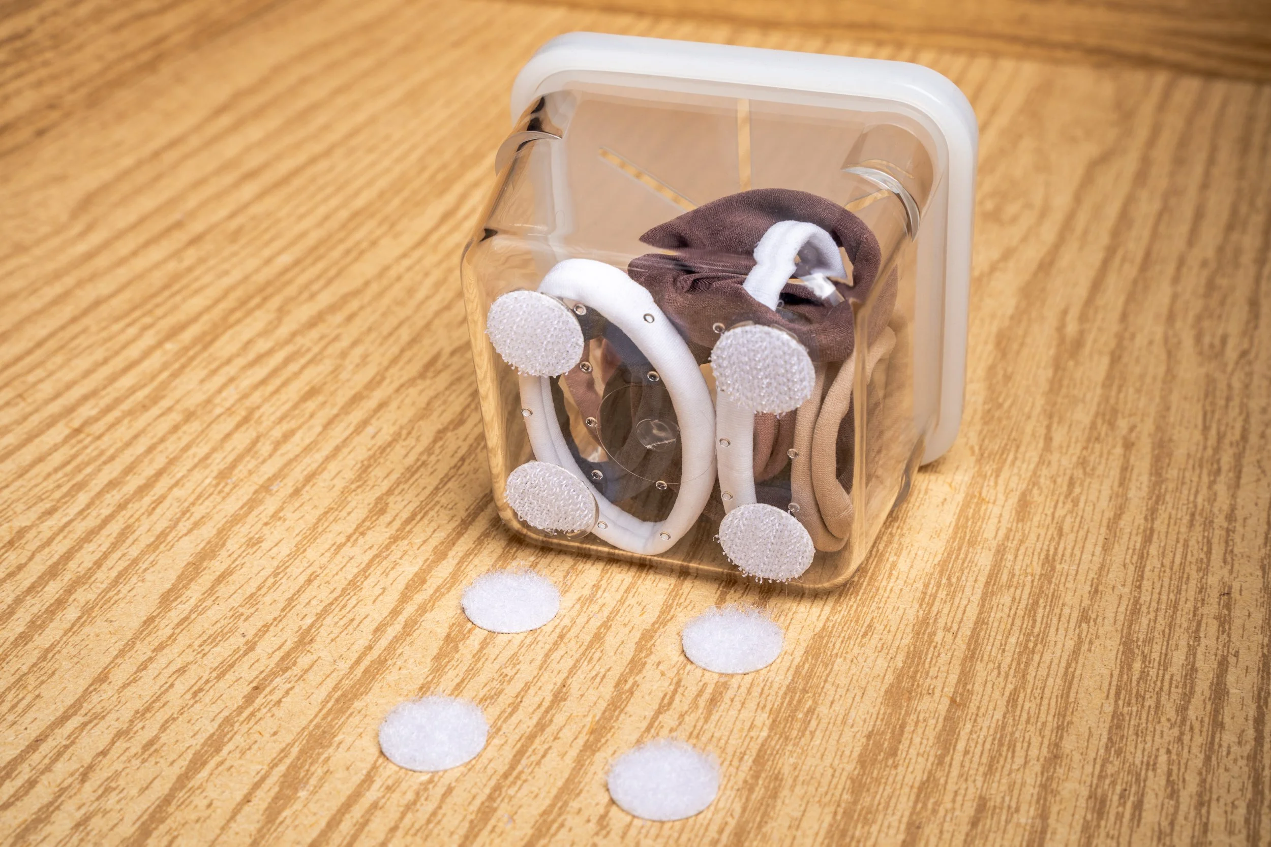 Plus, the optional velcro bottom keeps each container securely in place, staying put in your drawer, on any counter, kitchen or bathroom shelf. Effortlessly remove and reattach the containers after using them in another room or taking them with you on the go!